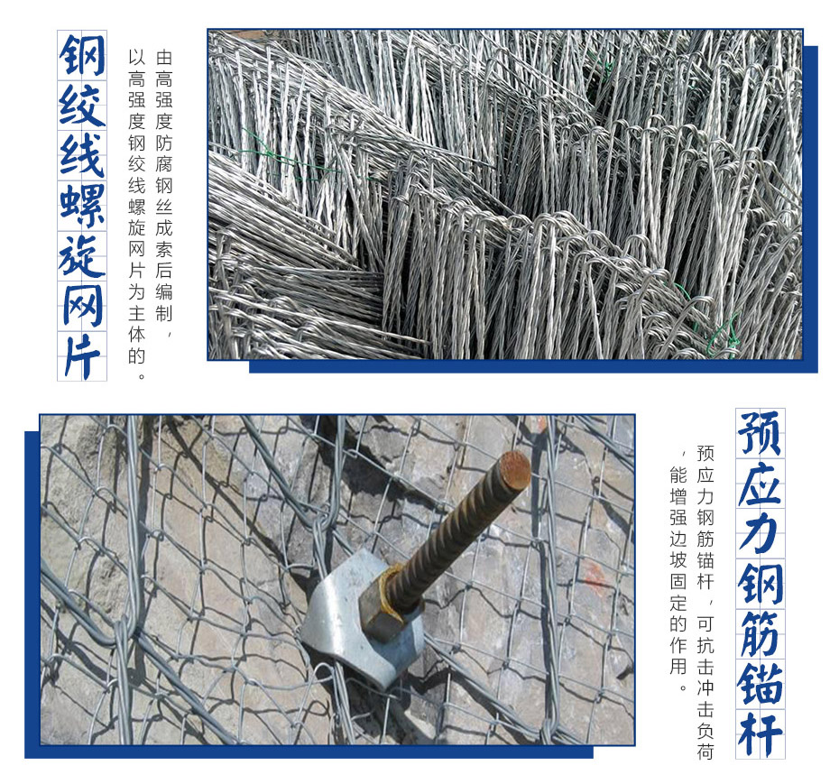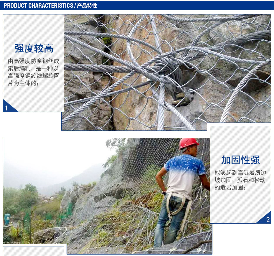 SPIDER絞索網(wǎng)邊坡穩(wěn)定系統(tǒng)是一種以S3高強(qiáng)度鋼絞線螺旋網(wǎng)片為主體的,全新的主動(dòng)防護(hù)形式。對(duì)于高陡巖質(zhì)邊坡加固、孤石和松動(dòng)的危巖加固來(lái)講,SPIDER絞索網(wǎng)邊坡穩(wěn)定系統(tǒng)是一種防護(hù)產(chǎn)品。