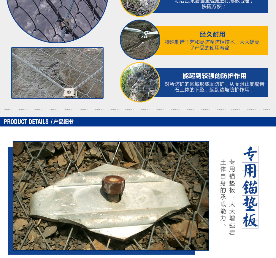 輔助錨桿:選用件。用于在局部低凹處使SPIDER網(wǎng)緊貼坡面,相對(duì)于主要錨桿,其直徑可約小,一般為20~25mm,長(zhǎng)度一般選用1~1.5m,其錨墊板亦可適當(dāng)減小。